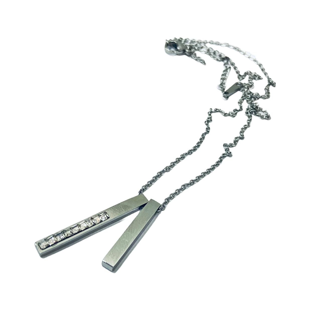 Size : As In Picture - Silver Chain Necklace | 2 Pendant Silver Neck Chain | Silver Plated Jewellery