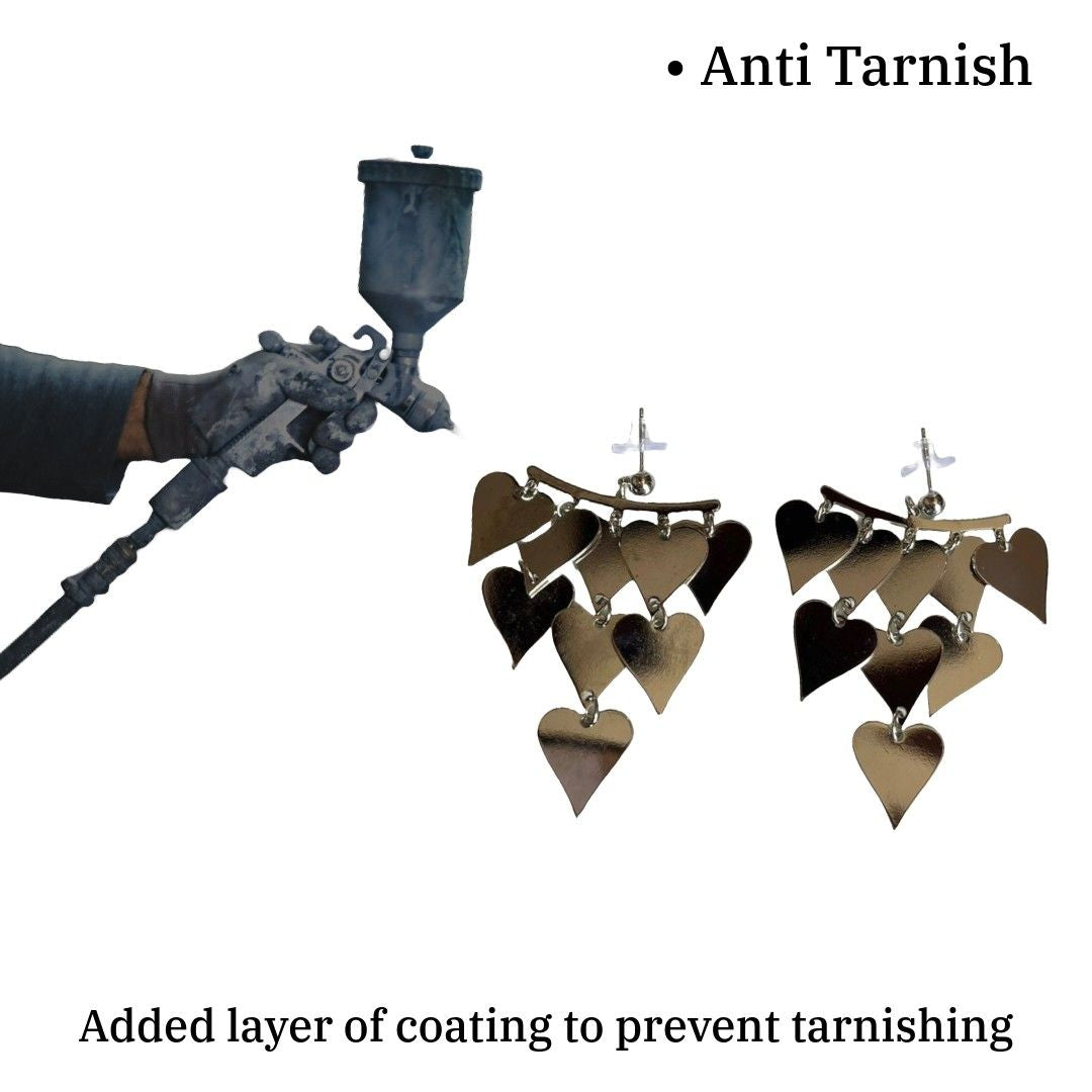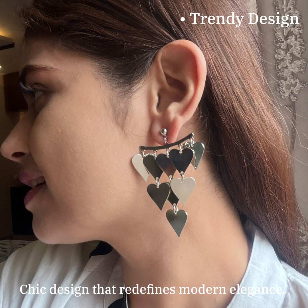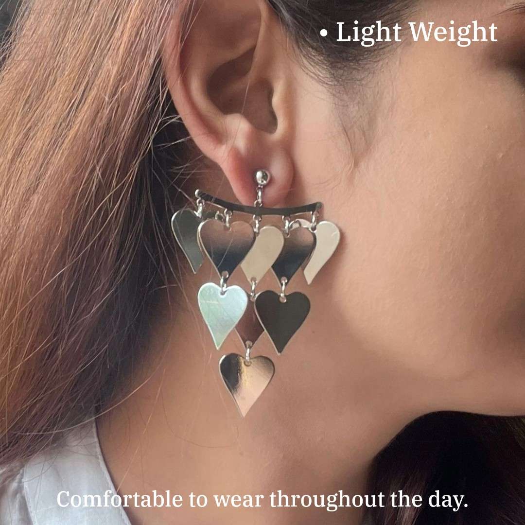 Base Material : Alloy - Silver Plated Heart Drop Dangle Earrings, Multi-Layered Dangle Design, Metallic Finish, Anti Tarnish, Water Resistant, Lightweight, Gift Packaged