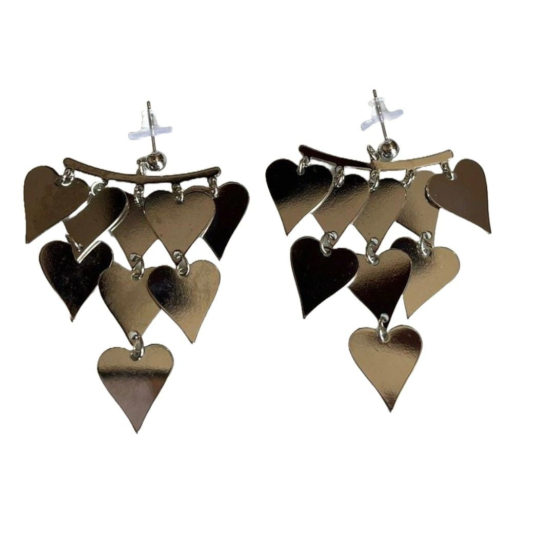 Size : As In Picture - Silver Plated Heart Drop Dangle Earrings, Multi-Layered Dangle Design, Metallic Finish, Anti Tarnish, Water Resistant, Lightweight, Gift Packaged