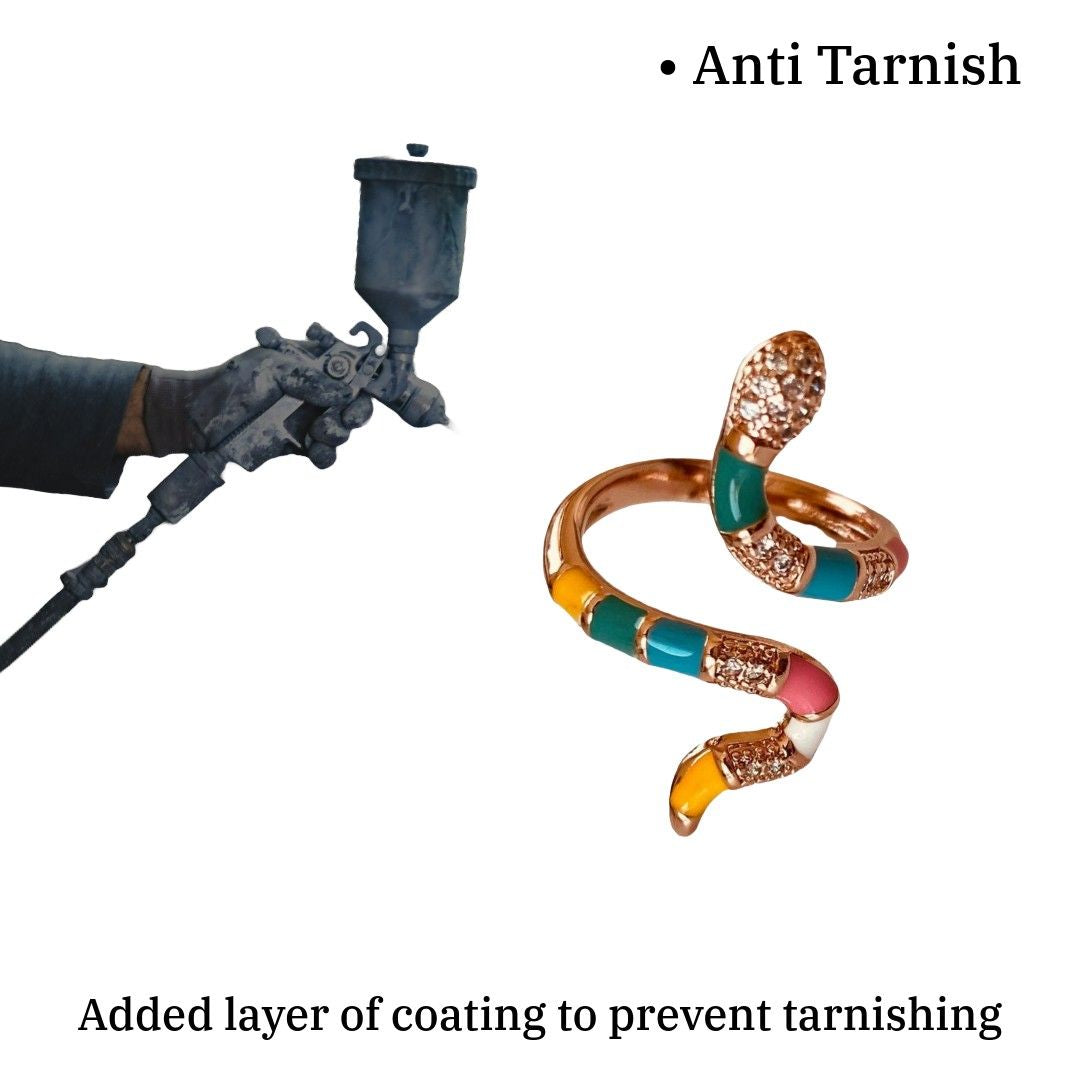 Anti-tarnished Product: We understand the importance of maintaining the beauty and brilliance of your jewellery. Our Rose Gold Snake Ring is crafted as an anti-tarnished product, ensuring that the rose gold plating retains its lustrous shine over time. Wear this ring with confidence, knowing that it will stay radiant and captivating, even with regular wear.