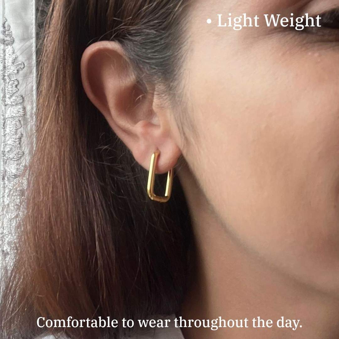 Don’t you hate earrings that tug on your earlobes? We do too. That’s why these gold-plated rectangular hoops are designed to be lightweight, ensuring maximum comfort without compromising on style. You'll hardly notice you're wearing them—until someone compliments you, of course.