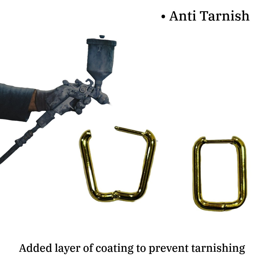 Base Material : Alloy - Square Rectangular Hoop Earrings, 2 cm, Gold- Plated, Geometric Design, Anti Tarnish, Water Resistant, Lightweight, Gift Packaged