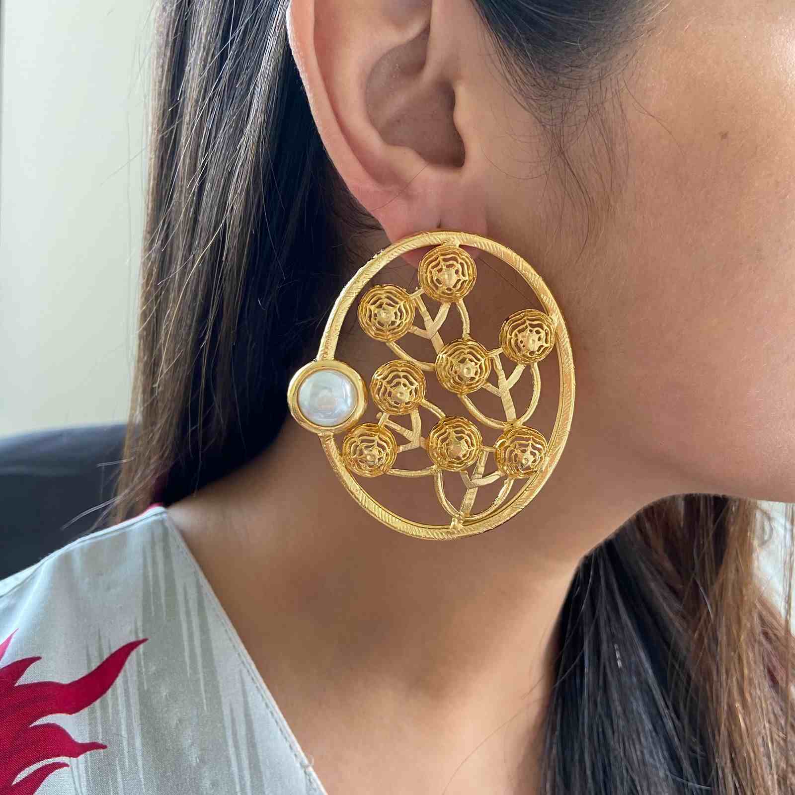 Introducing 'Sursangam' from our illustrious collection, 'Dhwani, The Sound of Love.' These exquisite earrings are the epitome of melodious elegance, meticulously designed to harmonize with the celebratory aura of our festival wear costume jewellery line. Each piece in this captivating collection is intricately handcrafted, resonating with the joyous spirit of celebration and encapsulating the very essence of love's symphony.