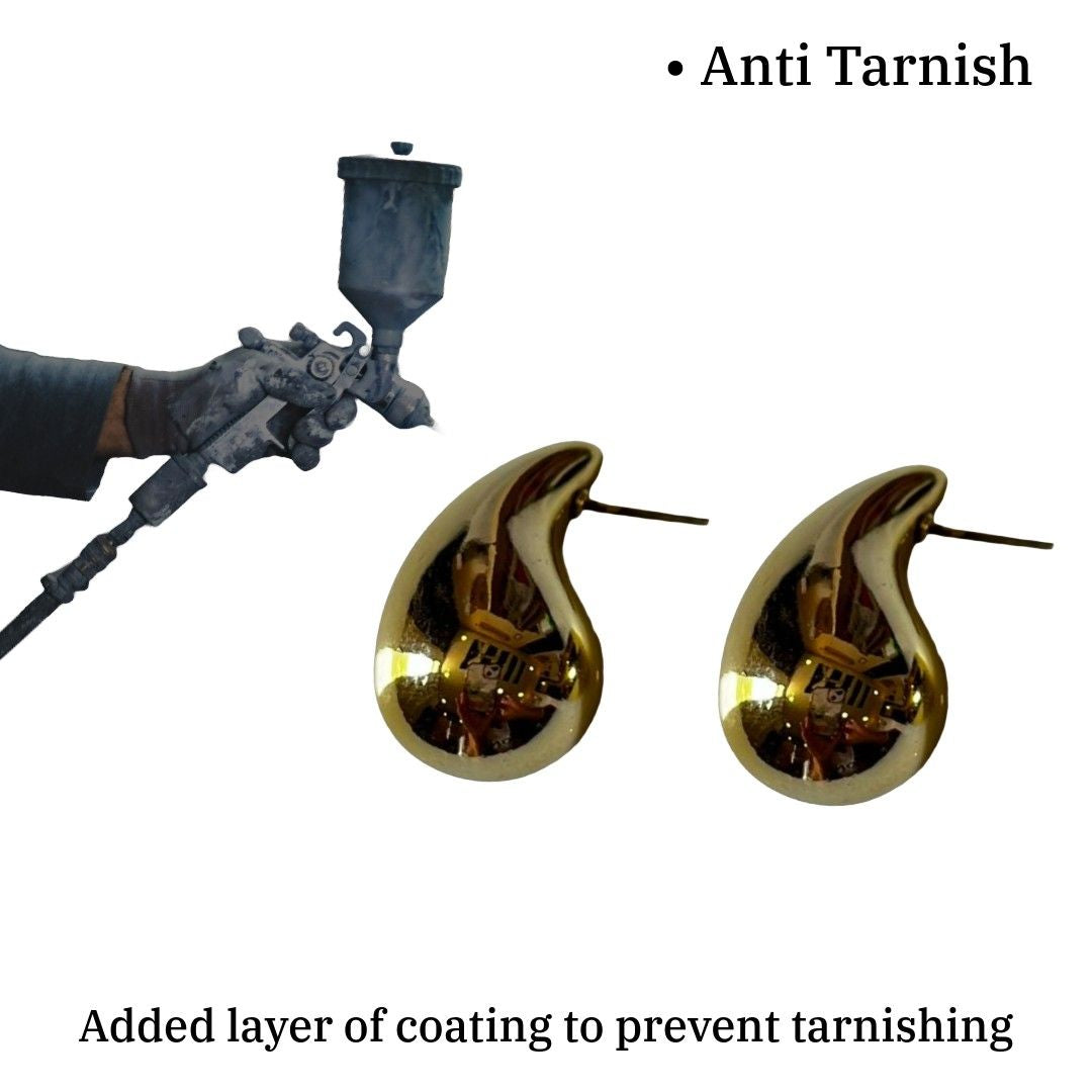 Crafted with a classic drop-shaped silhouette and finished in premium gold plating, these earrings bring together sophistication, versatility, and durability. They are more than jewellery—they are a statement of elegance that lasts a lifetime.